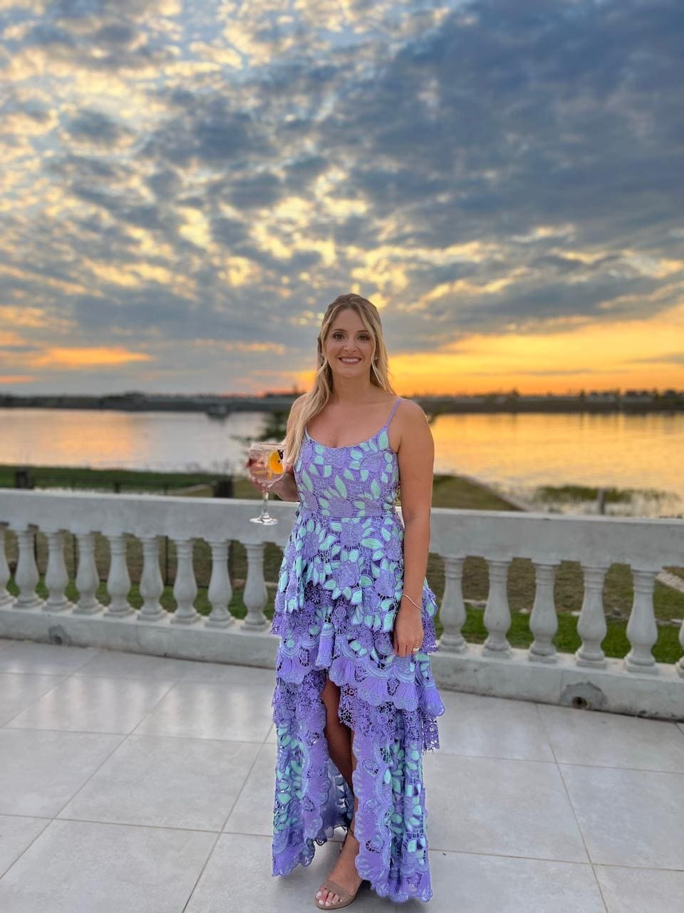 LAVANDA FLORES RANDAS Y CAPAS EN FALDA TIPO MIDI M