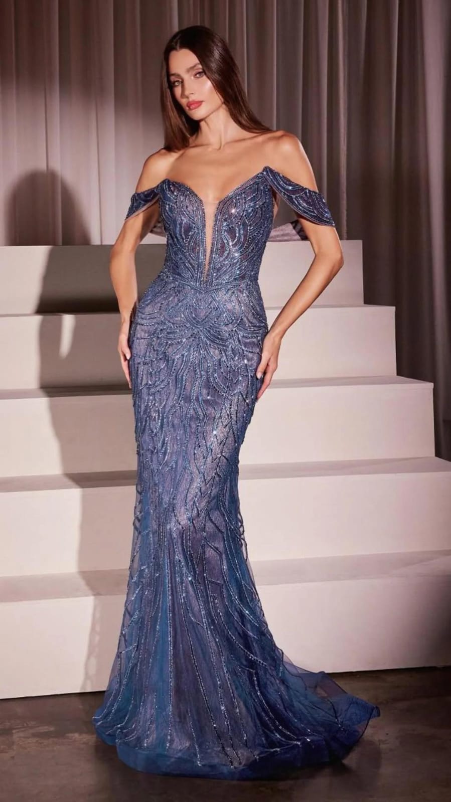 VESTIDO AZUL BRILLO MANGA CAIDA TALLE P