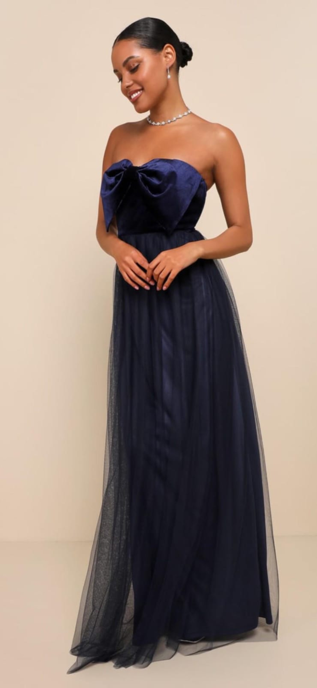 VESTIDO AZUL TUL ESTRAPLES MOÑO TALLE M