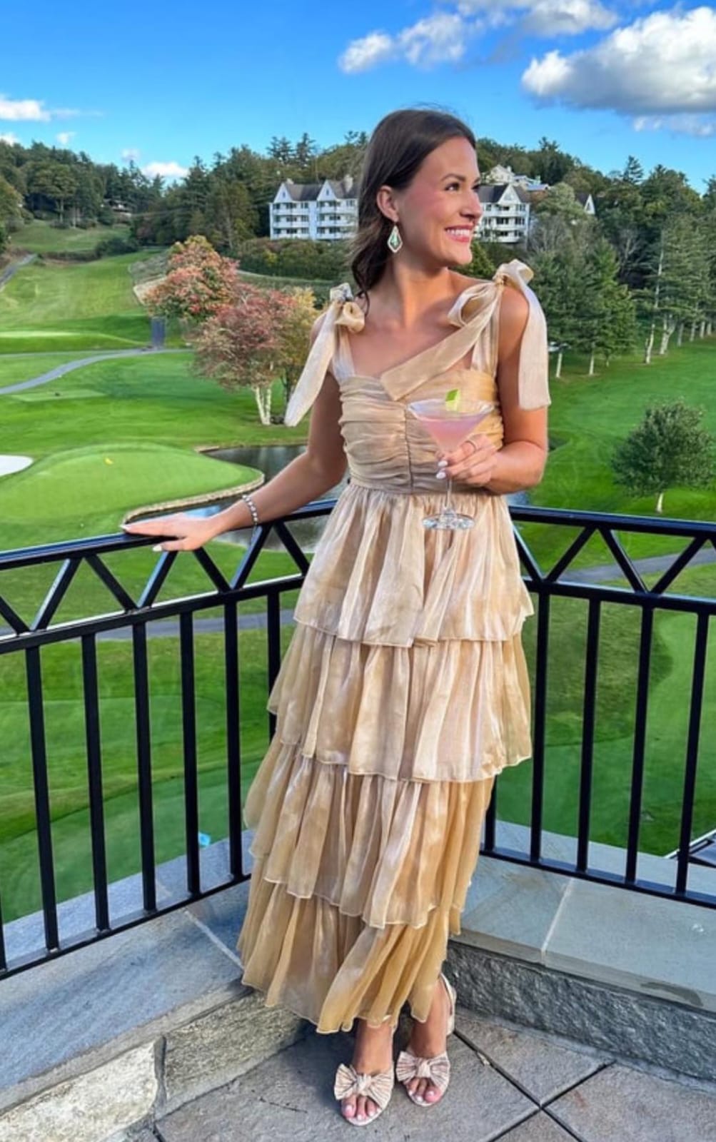 VESTIDO BEIGE CAPAS MIDI TALLE P