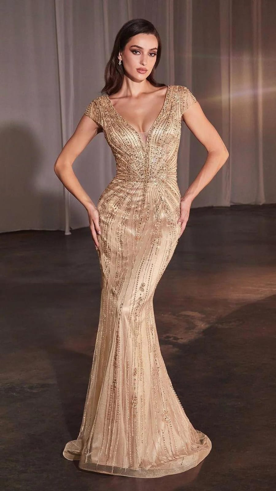 VESTIDO BEIGE LENTEJUELAS BORDADO TALLE G