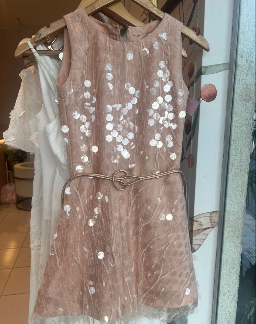 VESTIDO BEIGE LENTEJUELAS CORTO TALLE P
