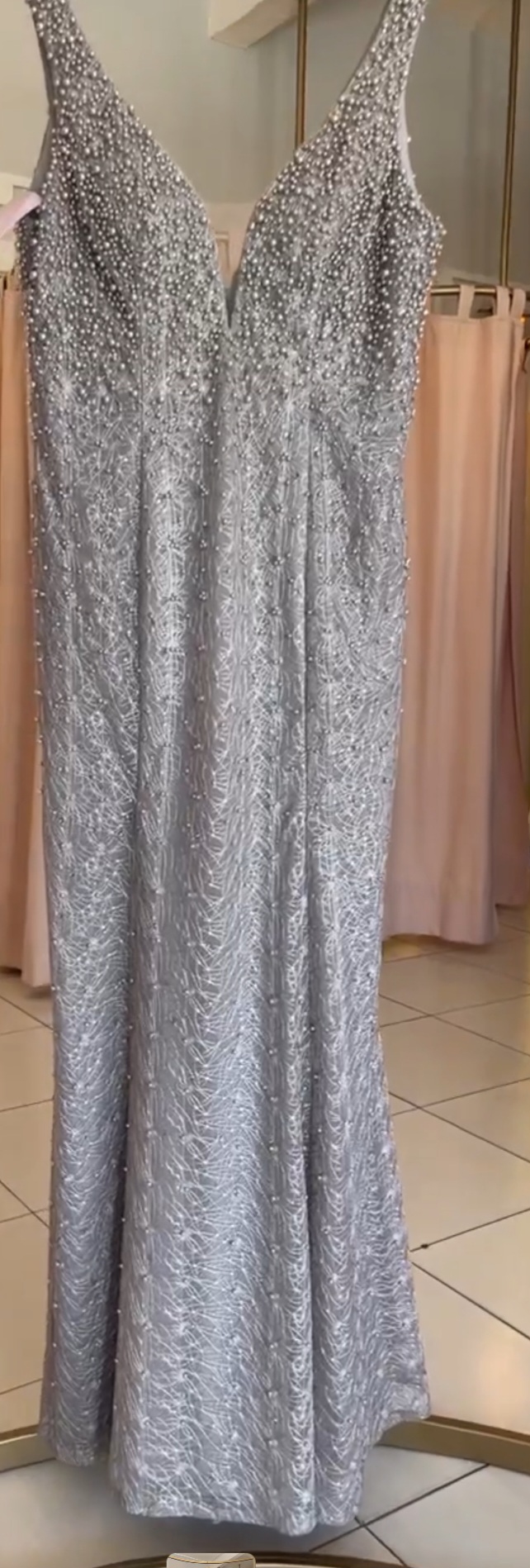 VESTIDO BEIGE PERLITAS TALLE G