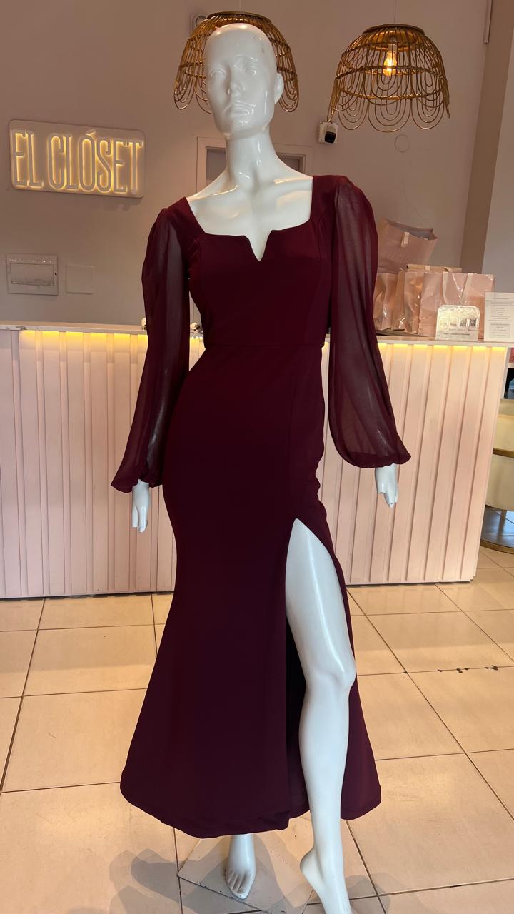 VESTIDO BORDO MANGAS LARGAS TAJO TALLE P