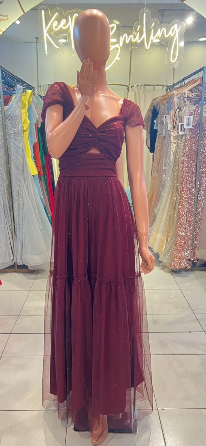 /VESTIDO BORDO TUL BRILLITO TALLE GÂ