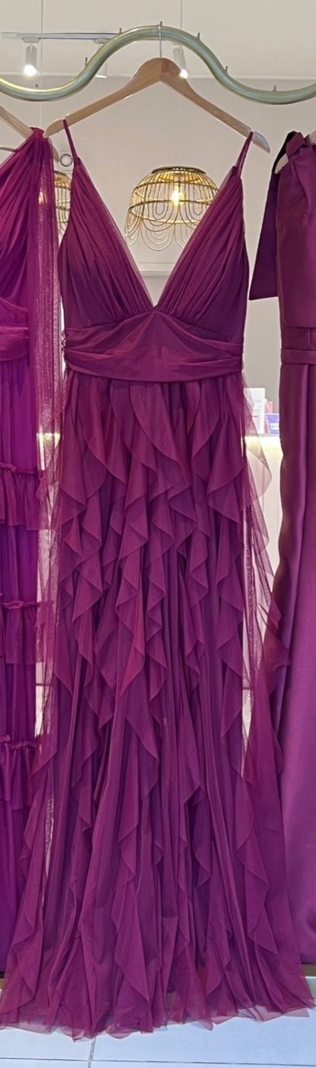 VESTIDO BORDO TUL CAPITAS TIRAS TALLE G