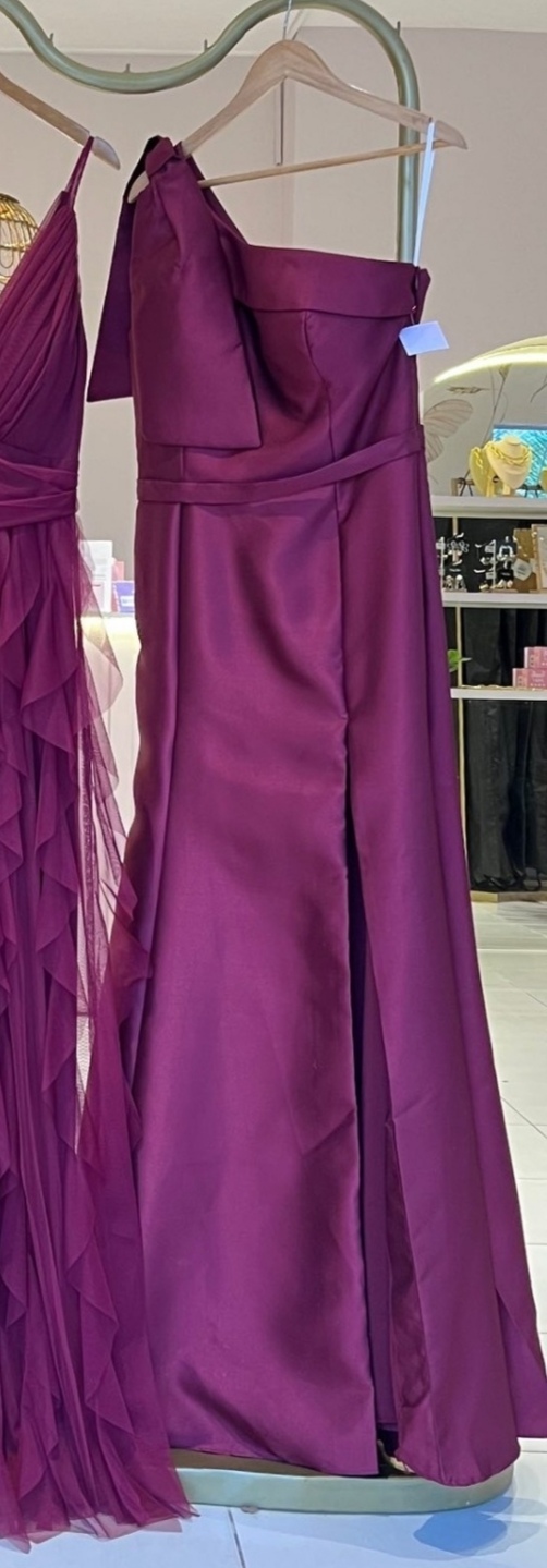 VESTIDO BORDO UN HOMBRO CINTO EN CINTURA TALLE G