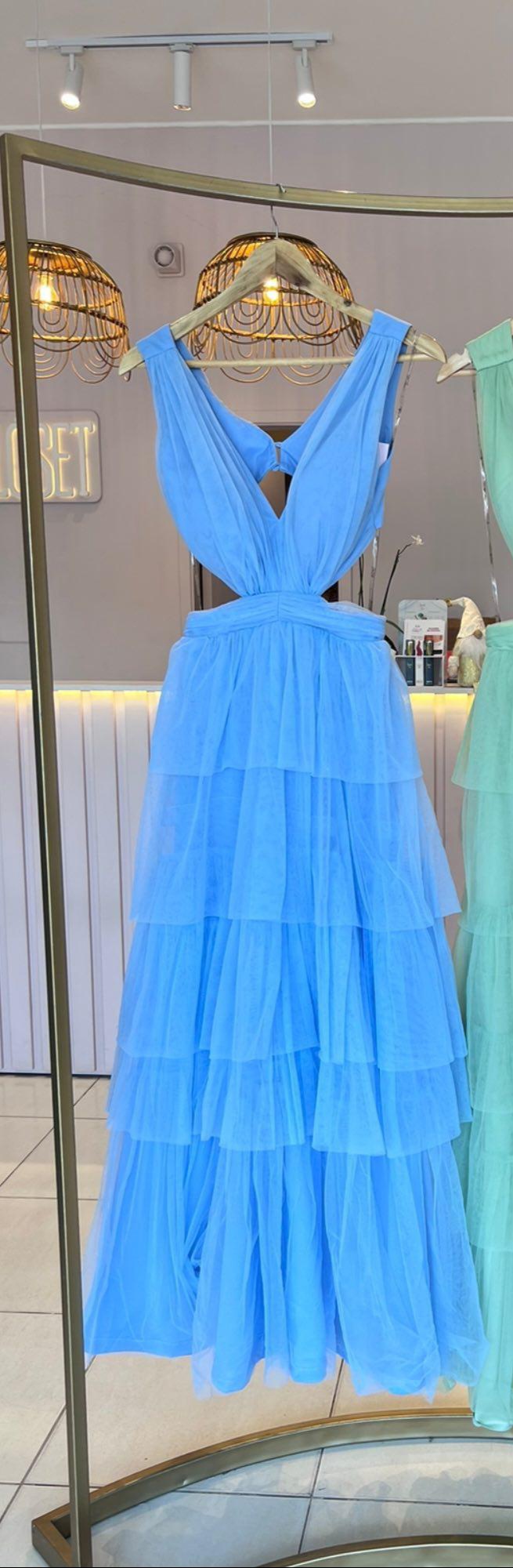 VESTIDO CELESTE TUL CAPAS TALLE P