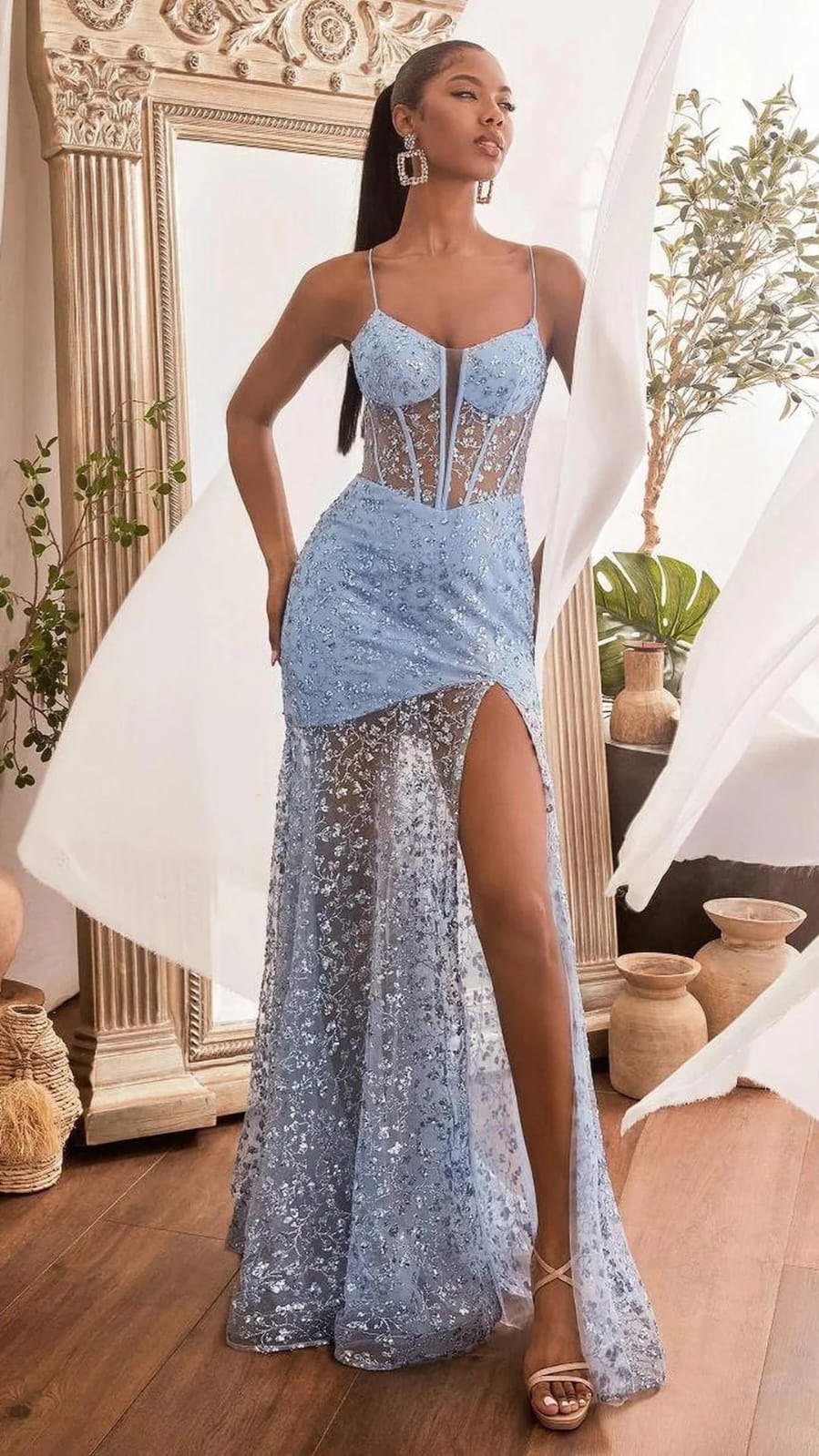 VESTIDO CELESTE TUL POLLERA ABAJO TALLE M