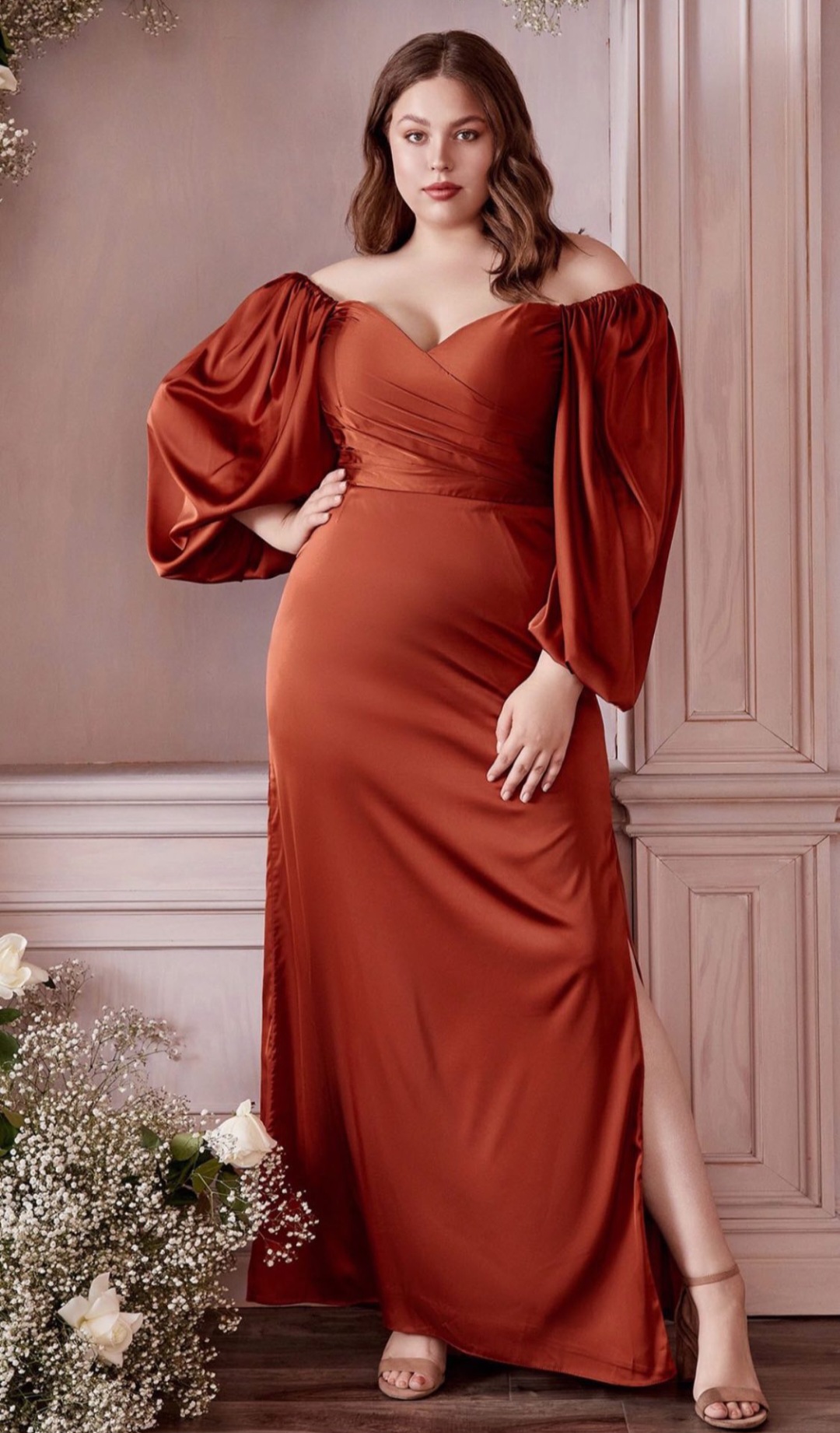VESTIDO COBRE MANGAS ABULLONADAS TALLE XG