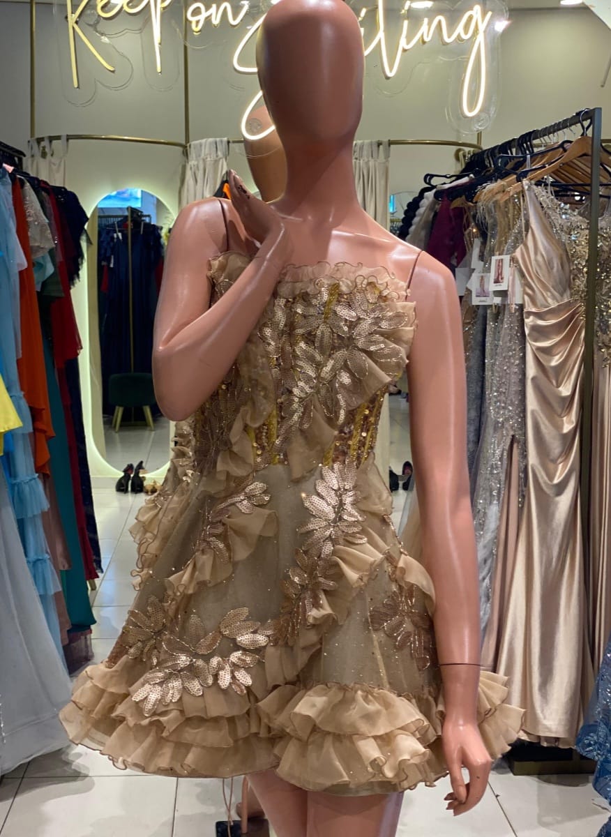 VESTIDO DORADO DETALLE BORDADO TALLE P