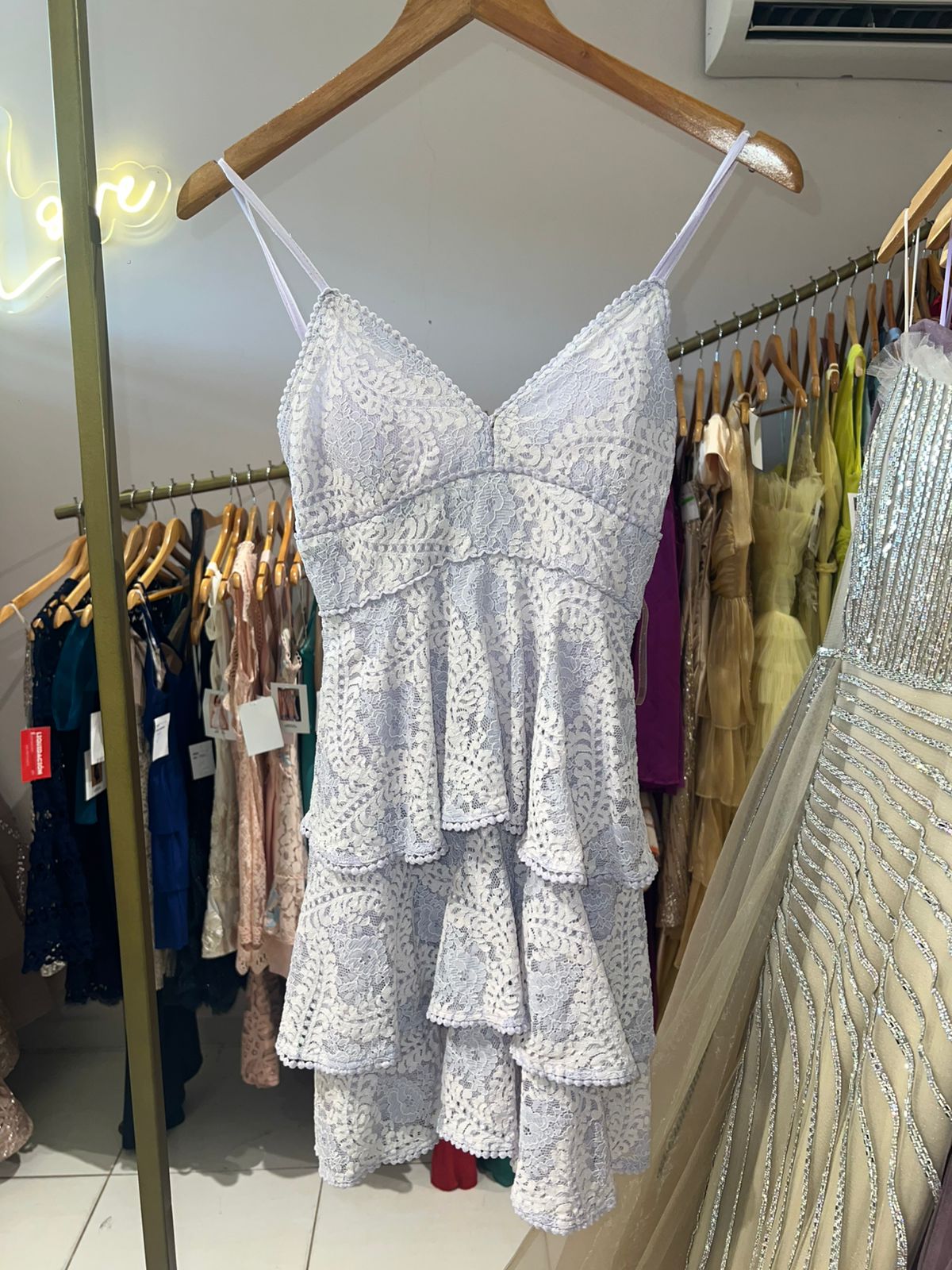 VESTIDO LAVANDA ENCAJE CORTO TALLE P