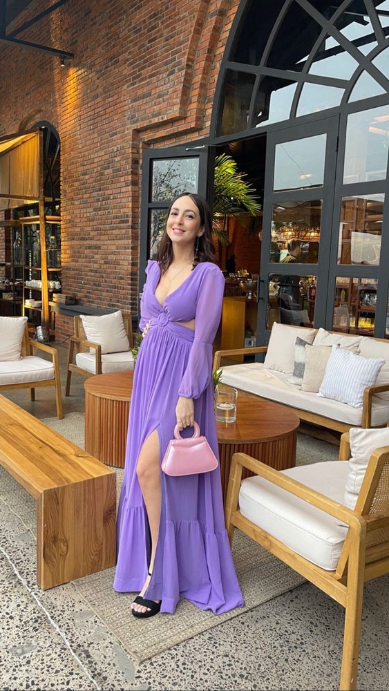 VESTIDO LAVANDA MANGAS LARGAS ABERTURA EN TORSO TALLE P