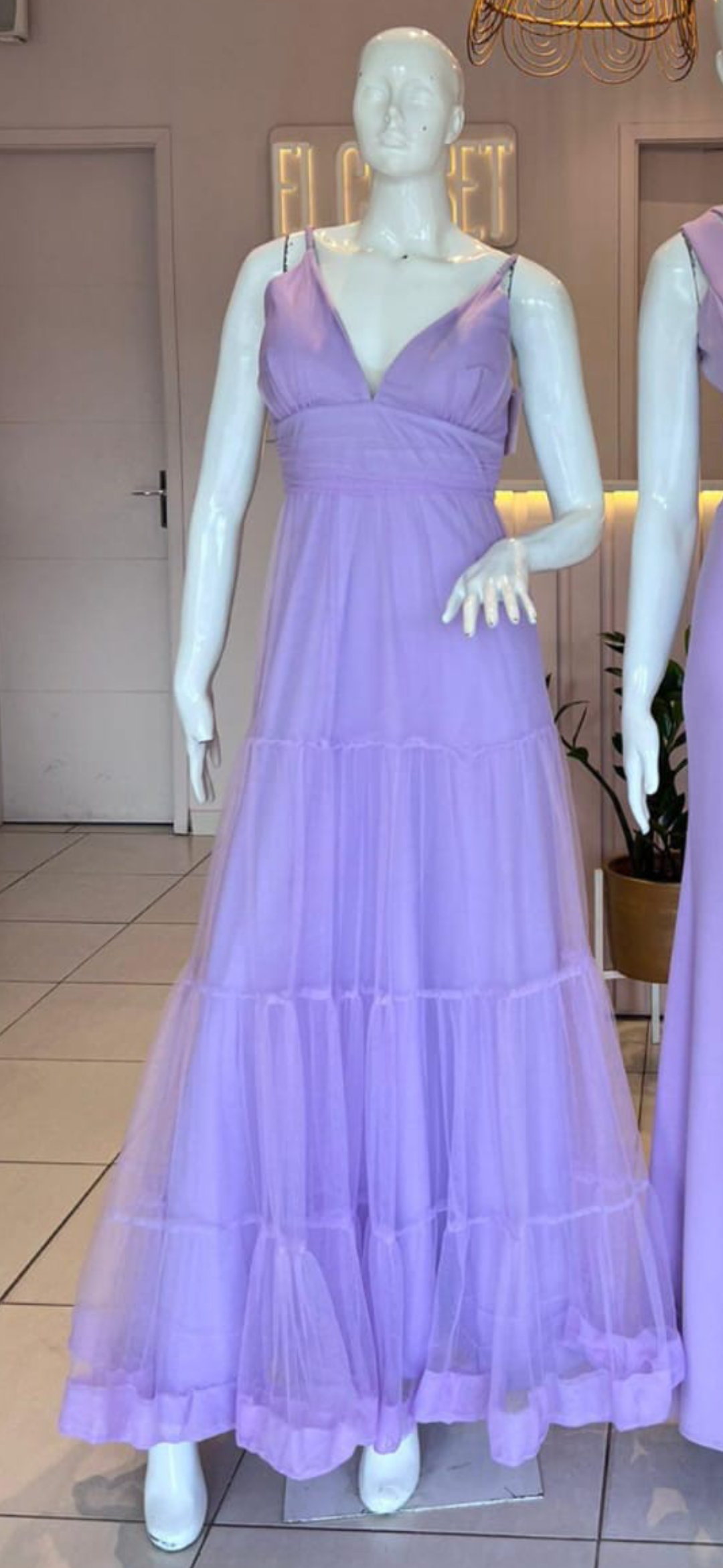 VESTIDO LAVANDA TUL TIRAS TRENZA TALLE M