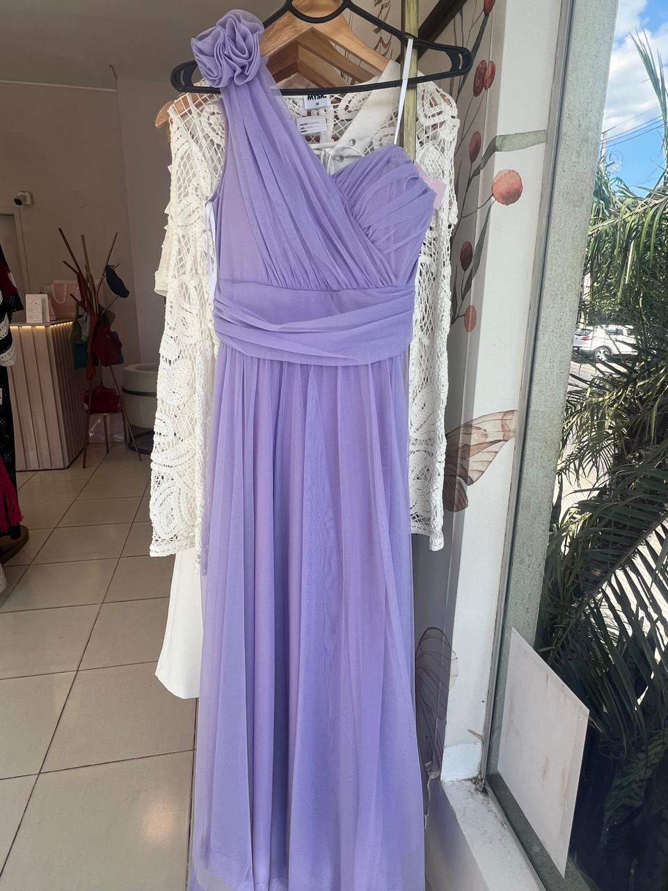 VESTIDO LAVANDA UN HOMBRO FLOR TUL TALLE G