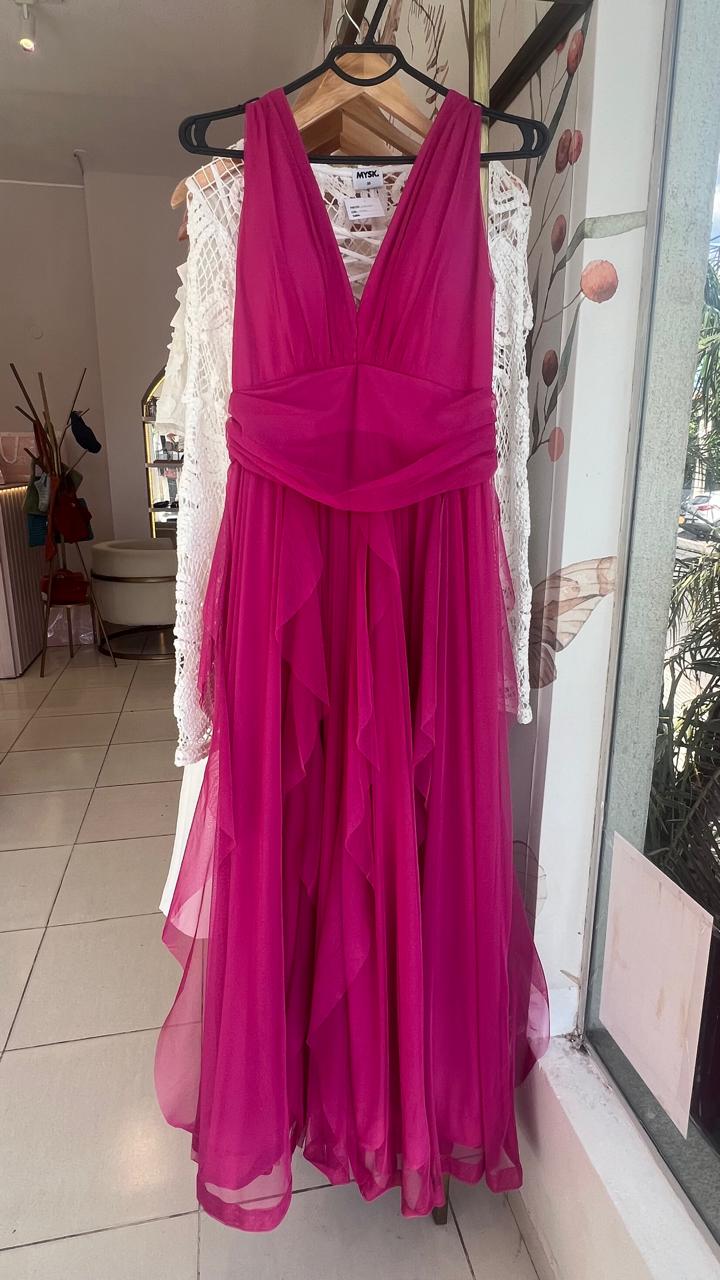 VESTIDO MAGENTA TUL CAPITAS TALLE XG