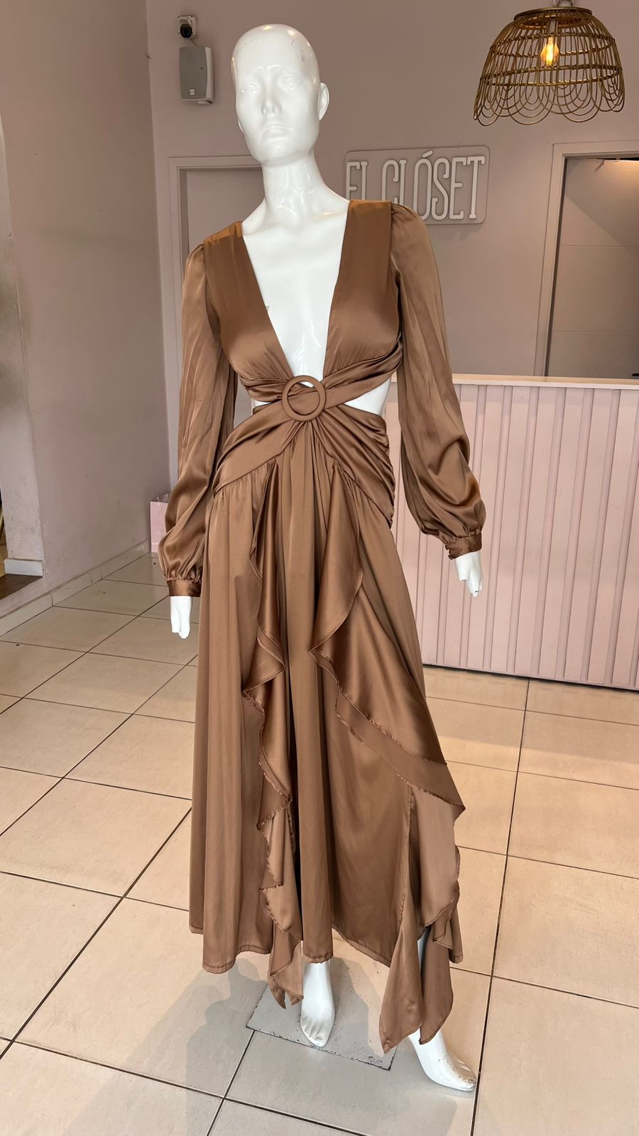 VESTIDO MARRON MANGAS LARGAS DOS PIEZAS TALLE P