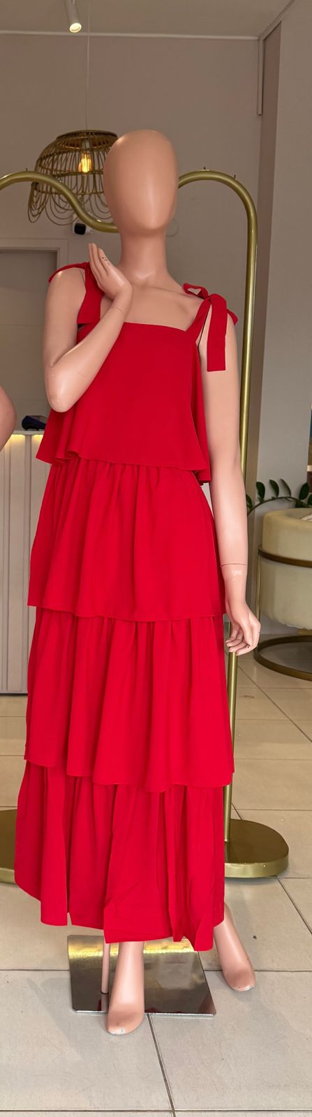 VESTIDO MIDI ROJO CAPAS TALLE P