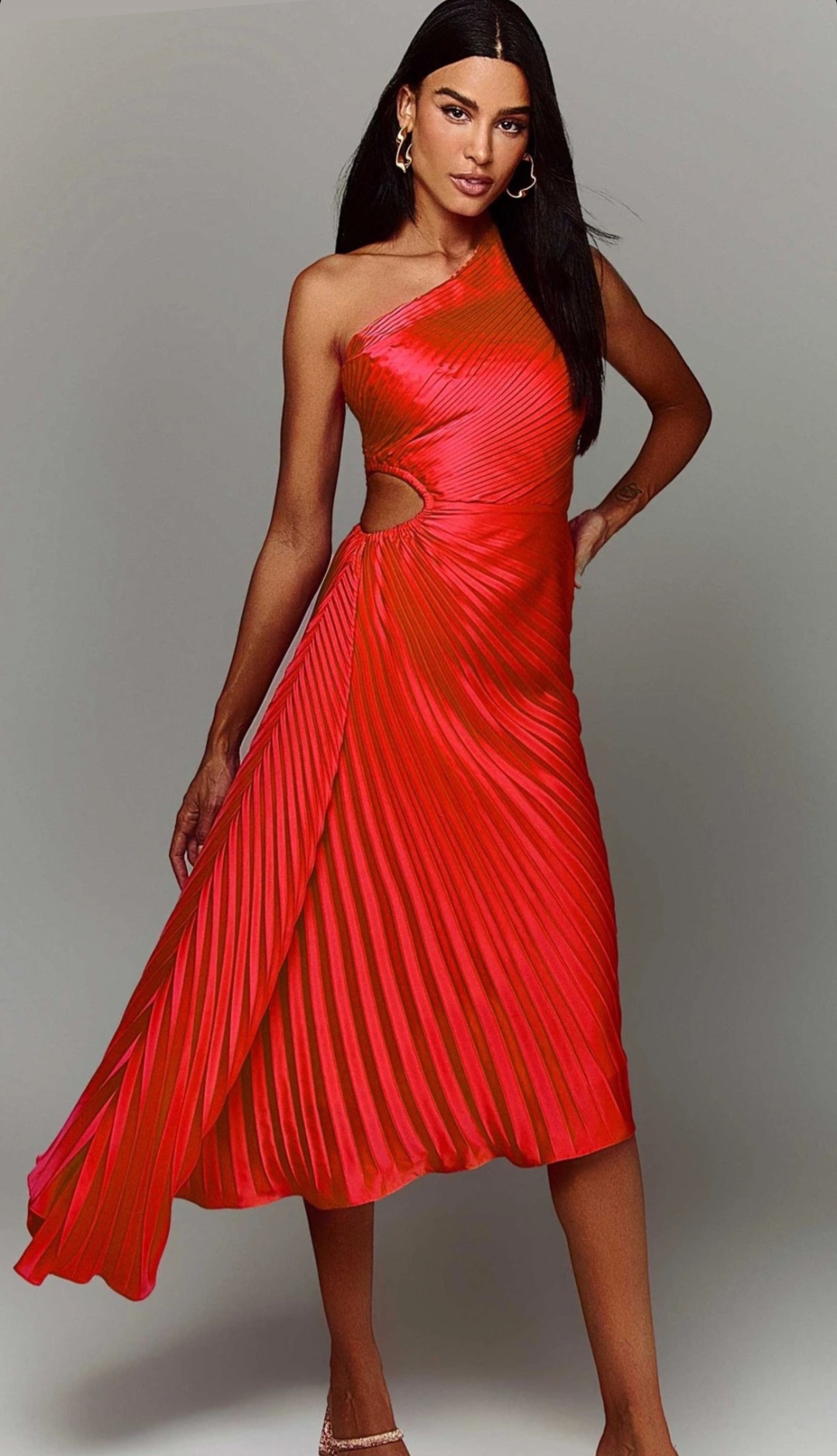 VESTIDO MIDI ROJO FUCSIA PLIZADO TALLE G