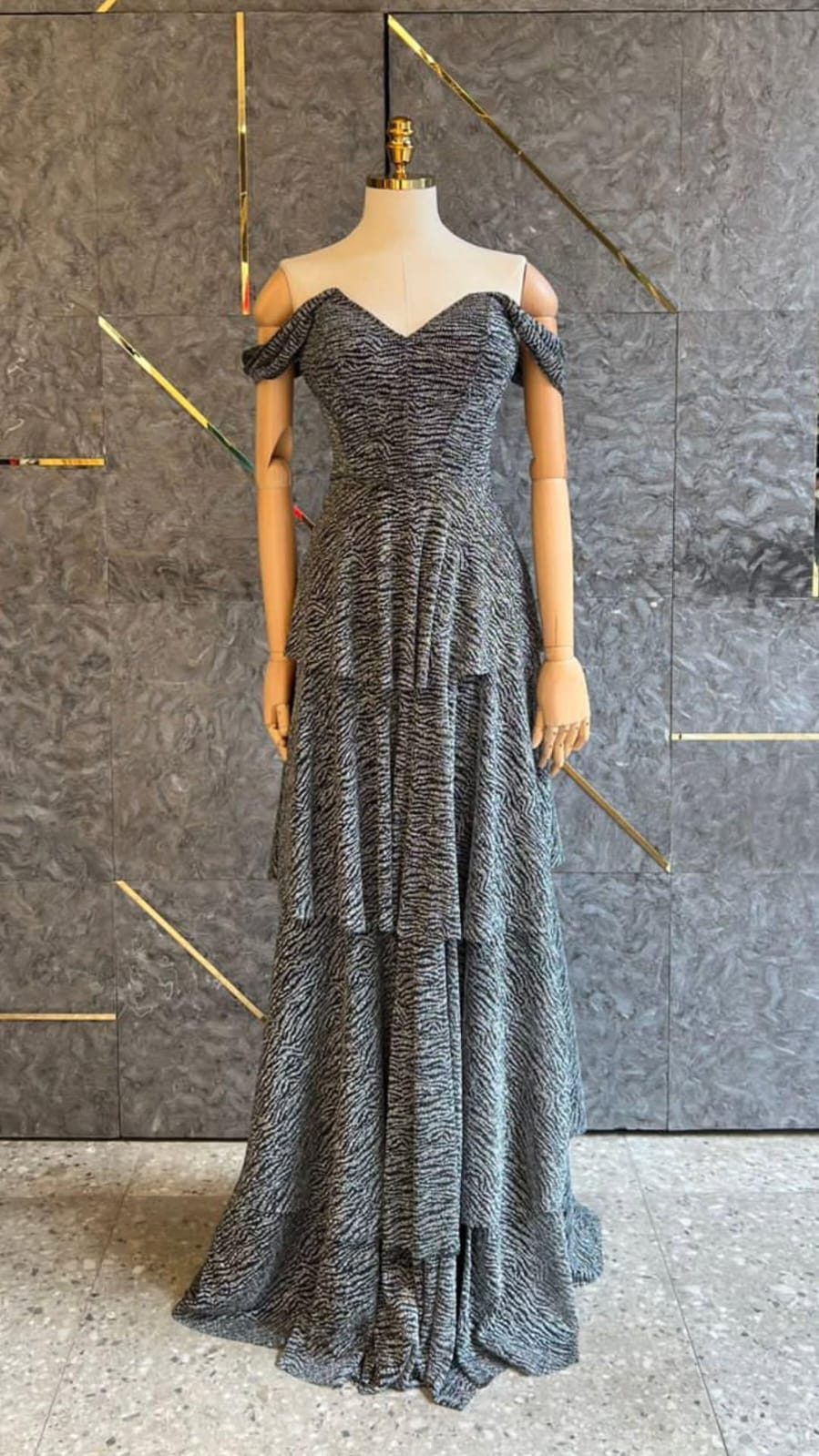 VESTIDO NEGRO BRILLITO CAPAS TALLE M