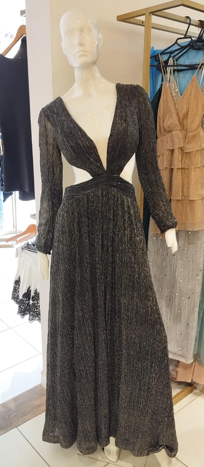 VESTIDO NEGRO BRILLITO MANGAS LARGAS TALLE M
