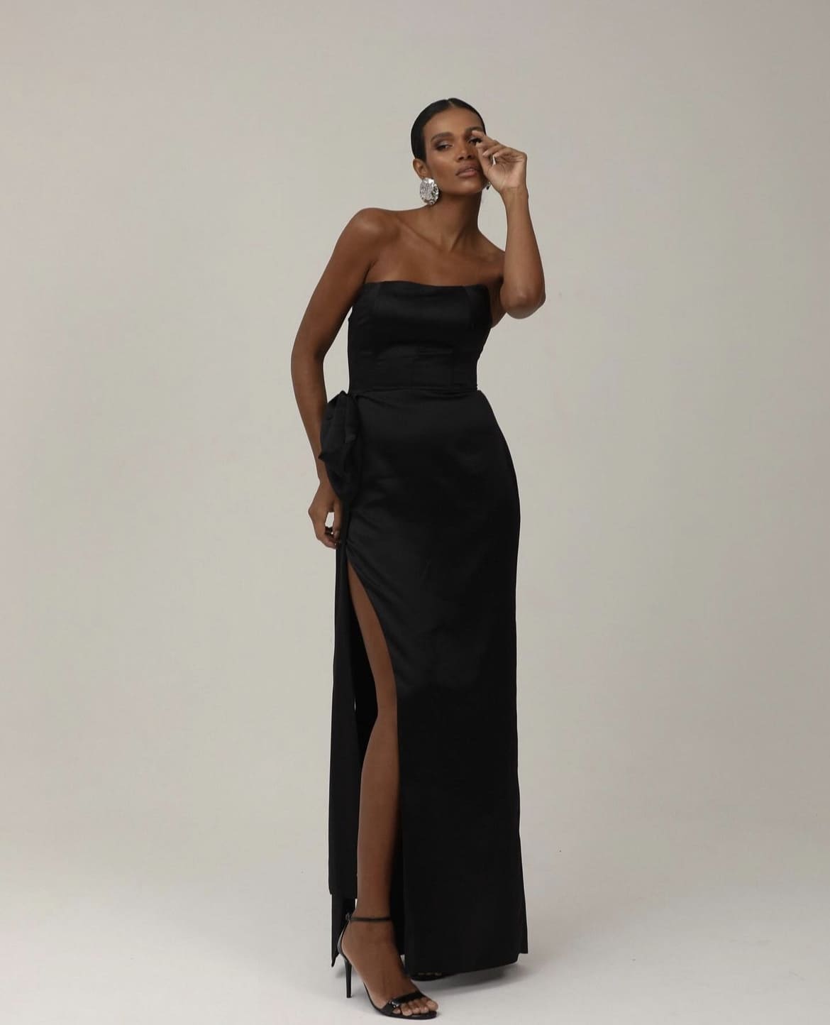 VESTIDO NEGRO SEDA MOÑO EN TAJO TALLE M