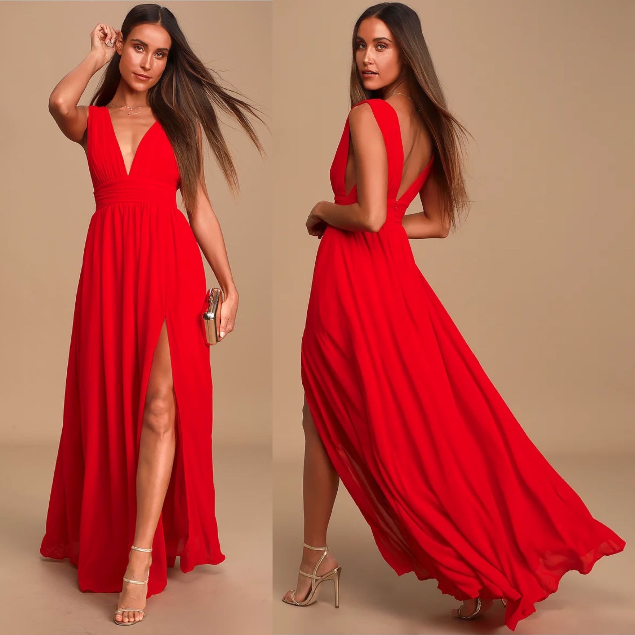 VESTIDO ROJO ESCOTE V Y TAJO SIN MANGA TALLE G