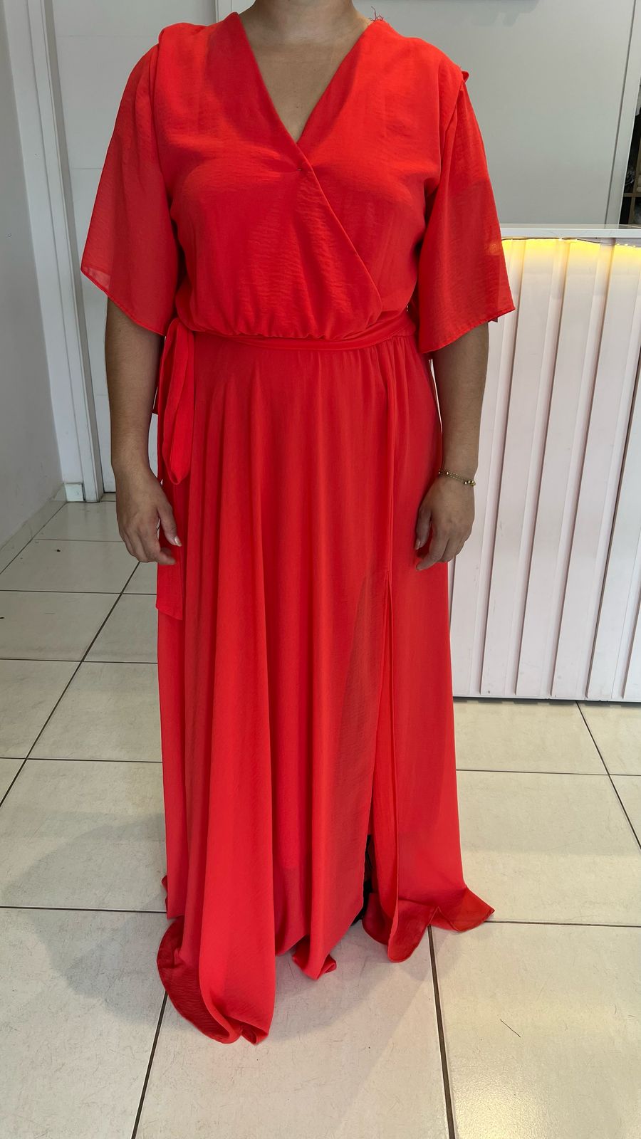 VESTIDO ROJO NARANJA MANGAS 3/4 TALLE XG