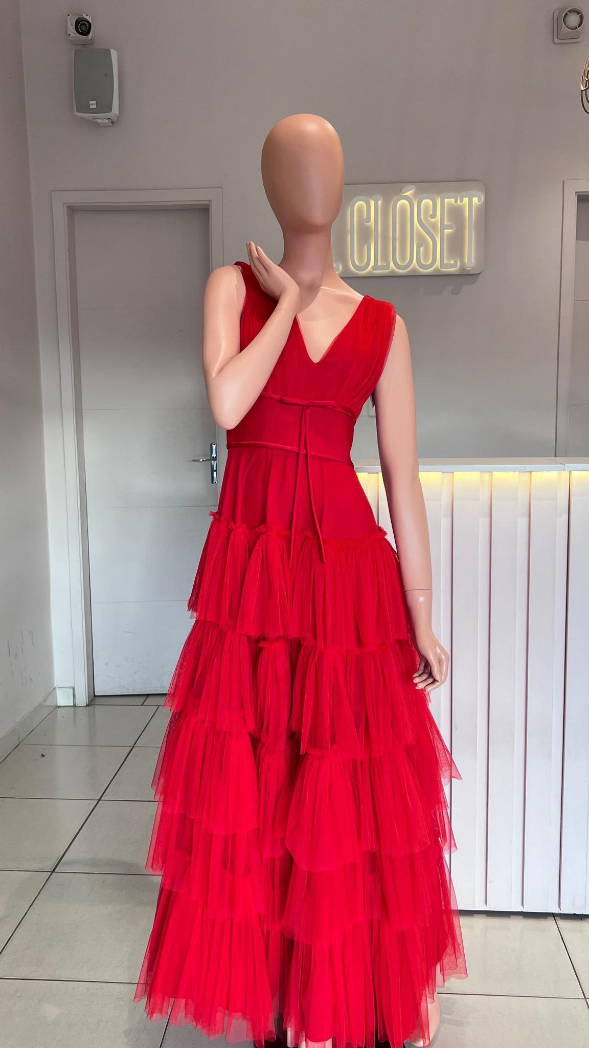 VESTIDO ROJO TUL CAPITAS TALLE P
