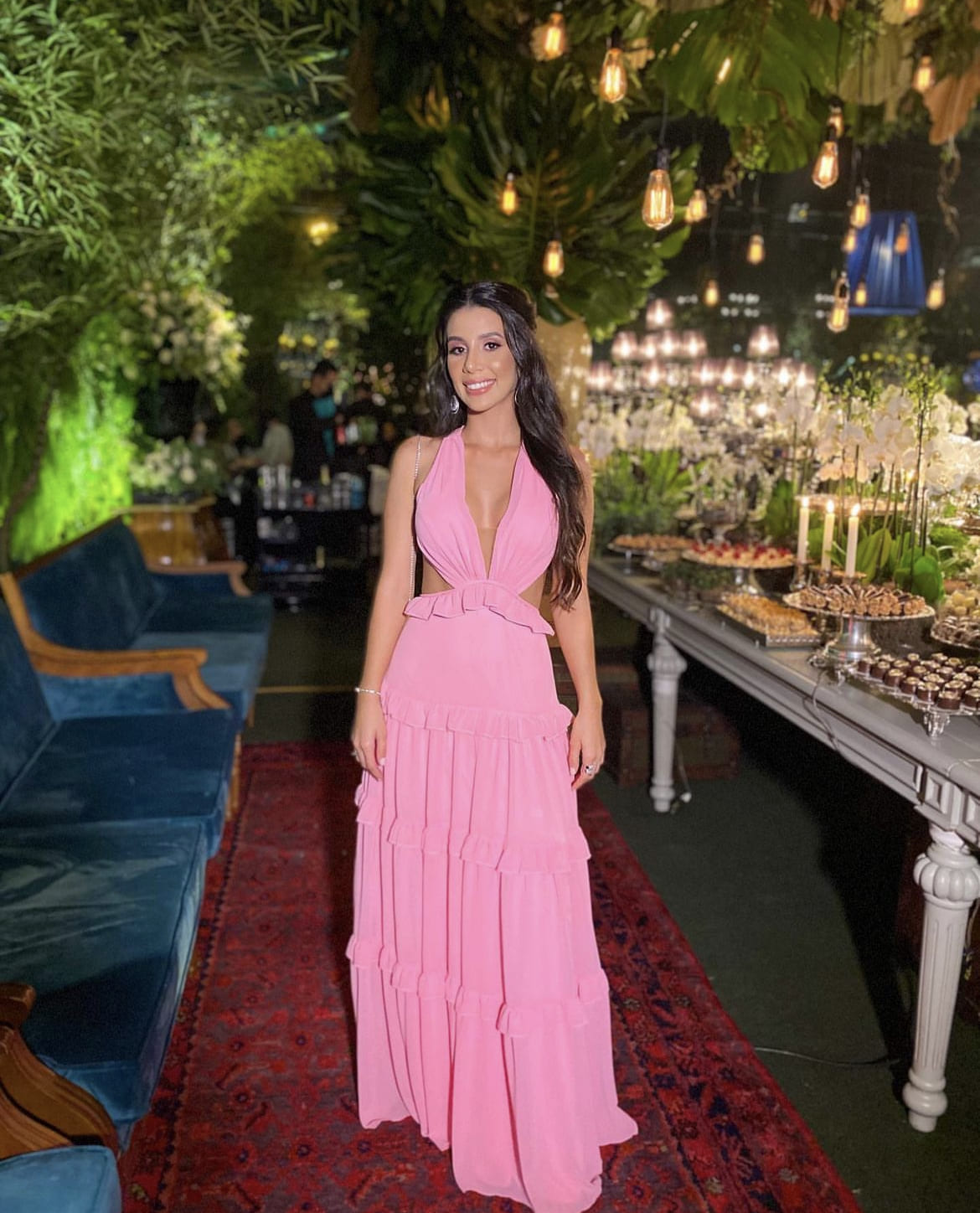 VESTIDO ROSA CHICLE ESPALDA CRUZADA TALLE M