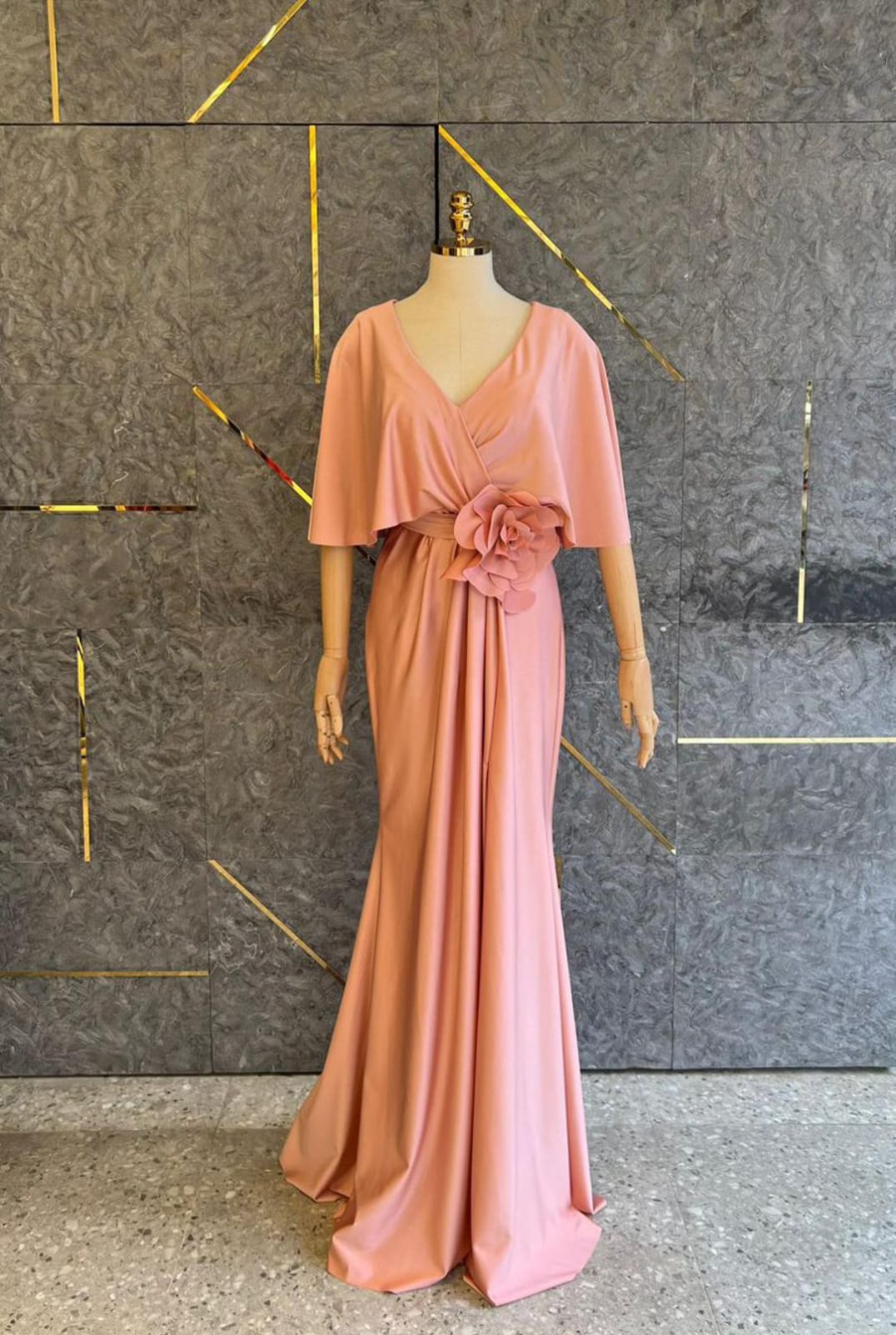 VESTIDO ROSA ELASTICO FLOR EN CINTURA TALLE G