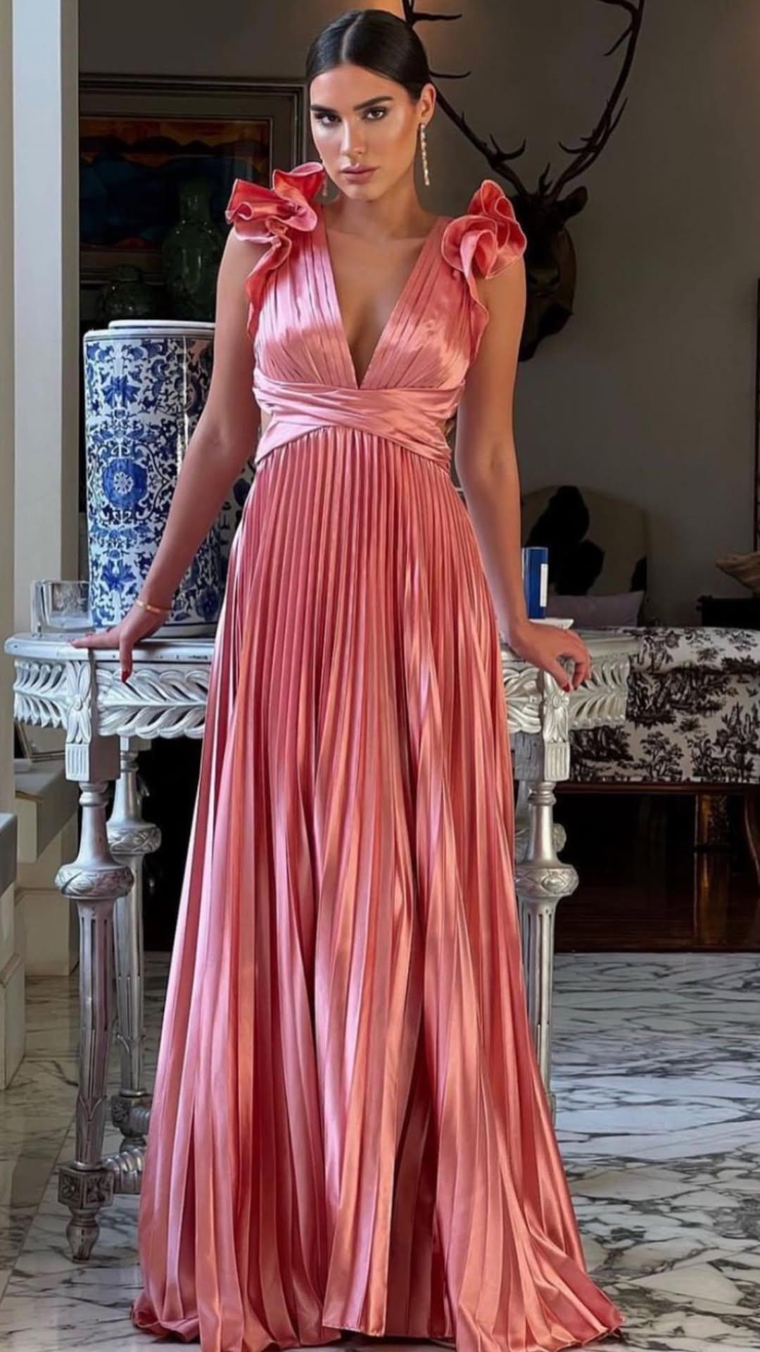 VESTIDO ROSA PLIZADO ESPALDA CRUZADA TALLE G