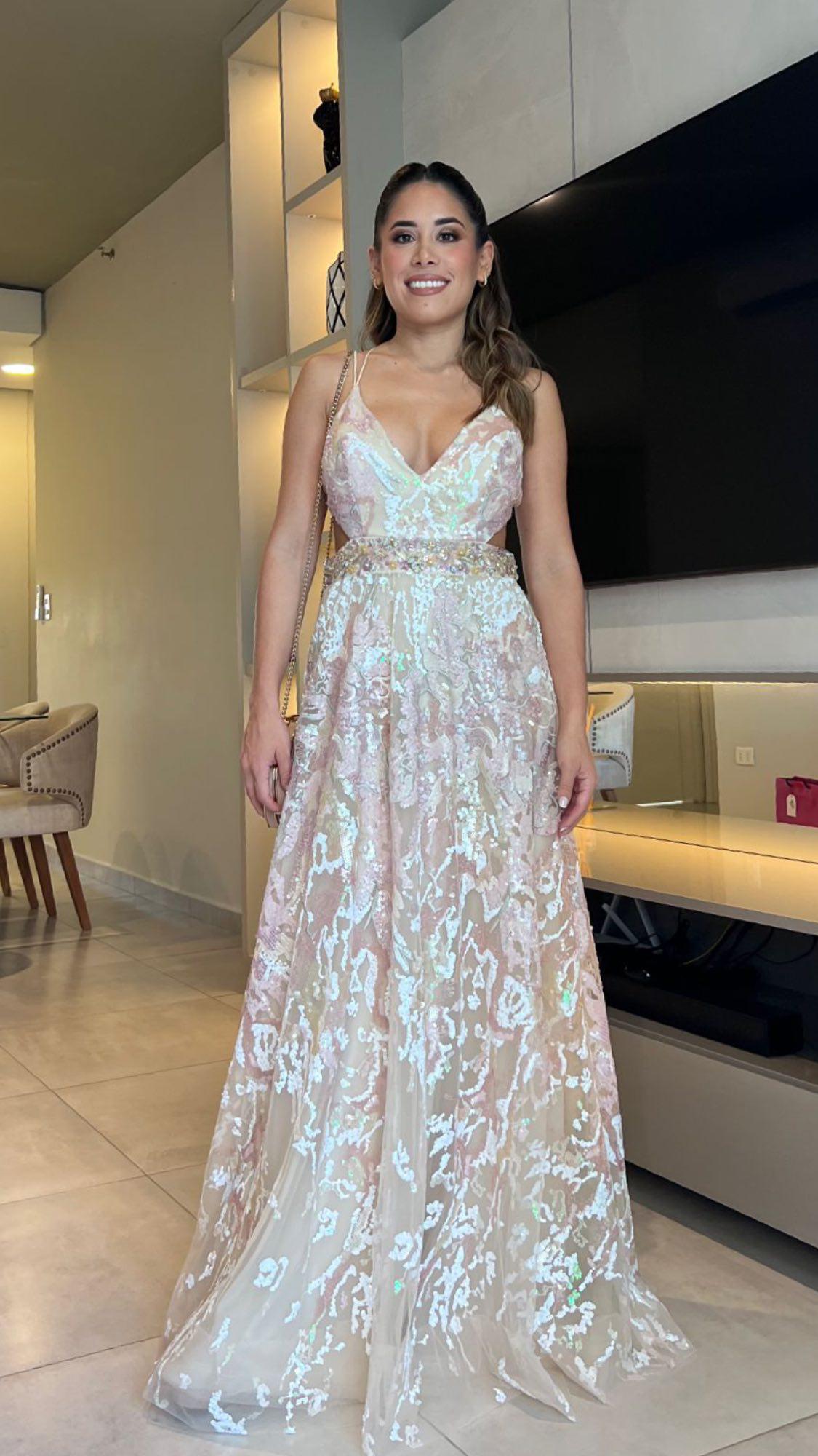 VESTIDO ROSE LENTEJUELAS COSTADO ABIERTO TALLE P