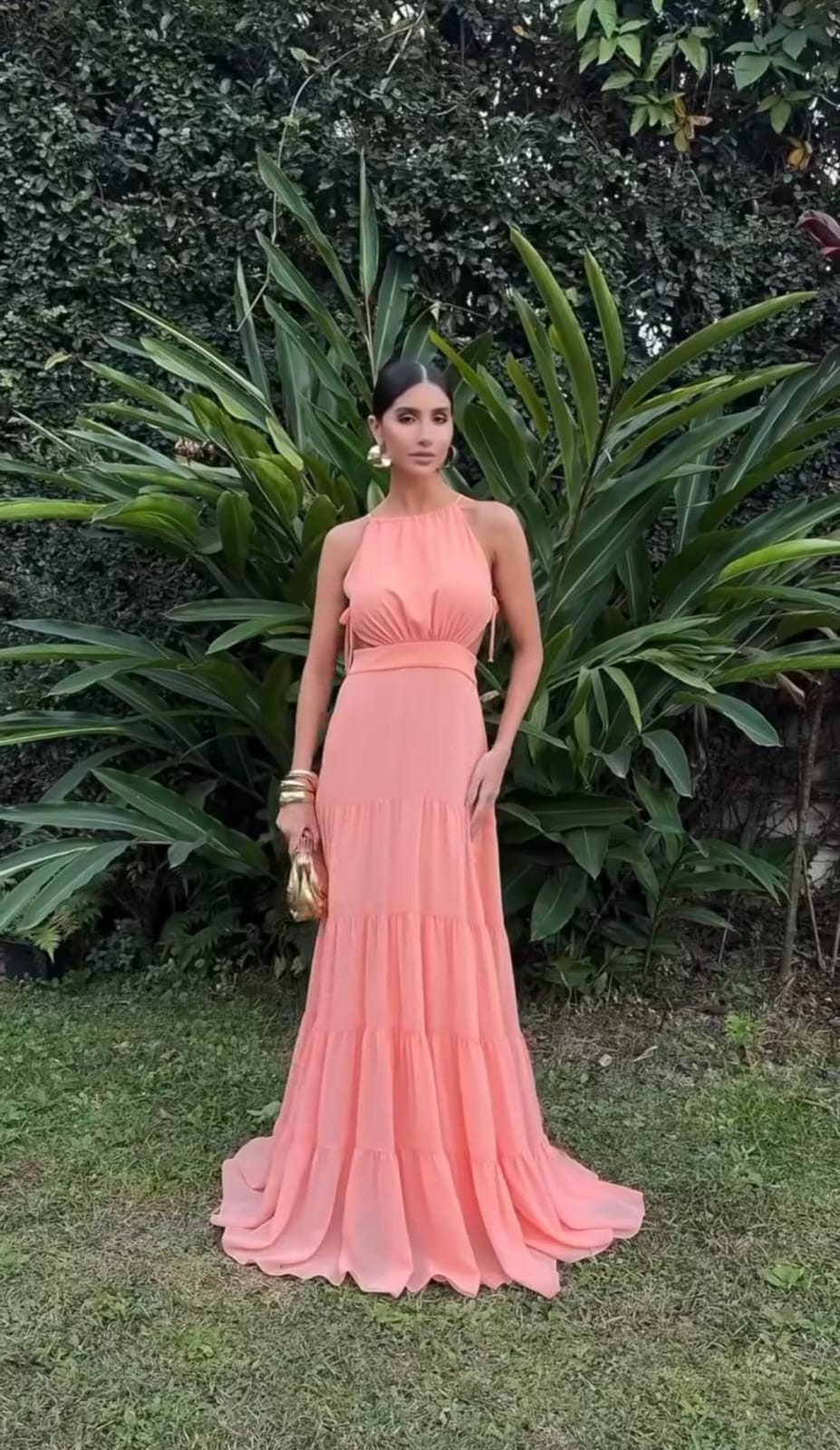VESTIDO SALMON ALDEANA CUELLO HALTER TALLE M