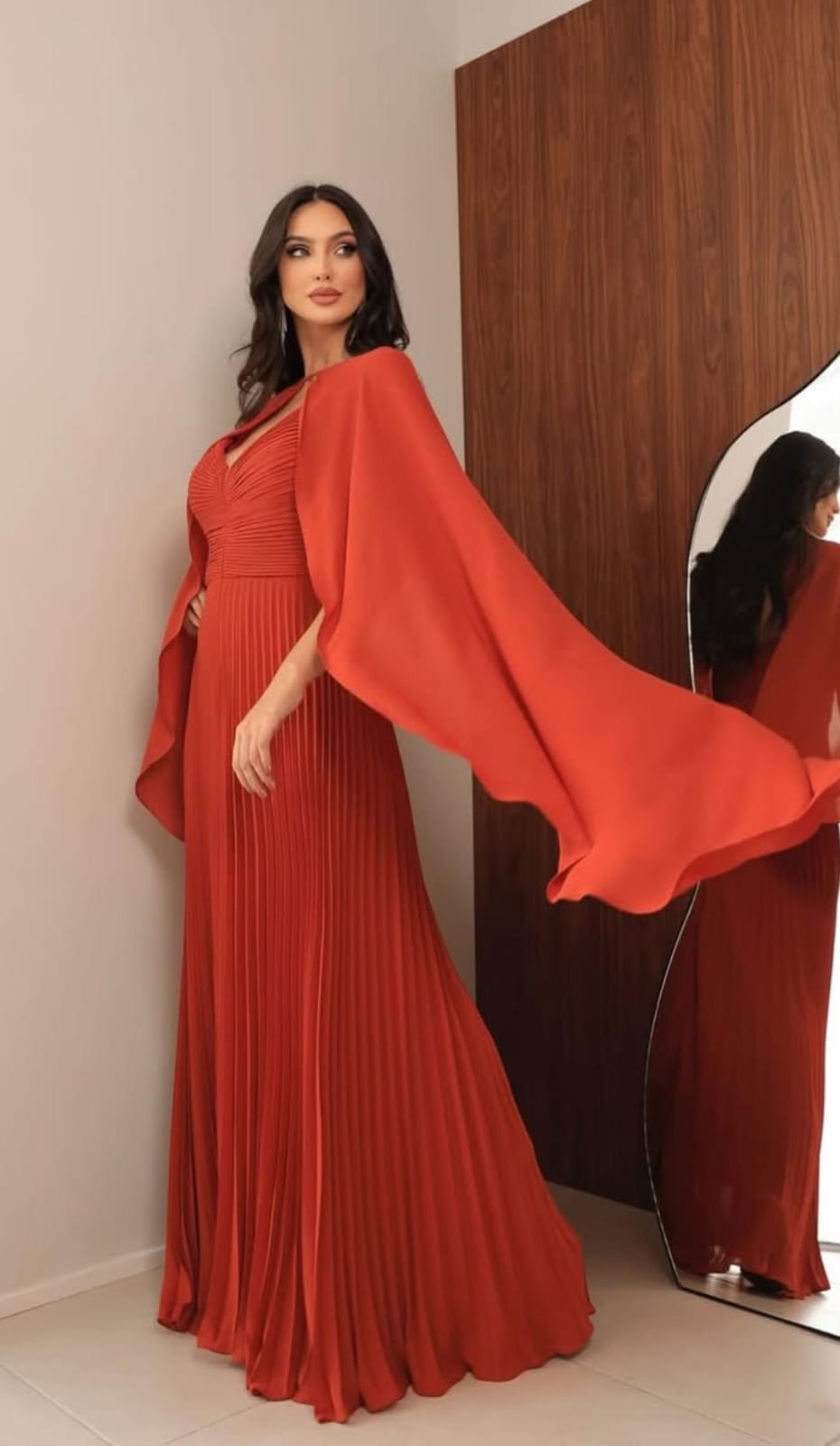 VESTIDO TERRACOTA PLIZADO CON CAPA TALLE M