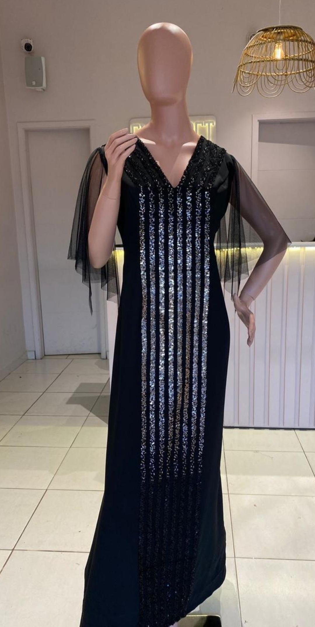 VESTIDO TUNICA NEGRO LENTEJUELAS EN MEDIO TALLE G