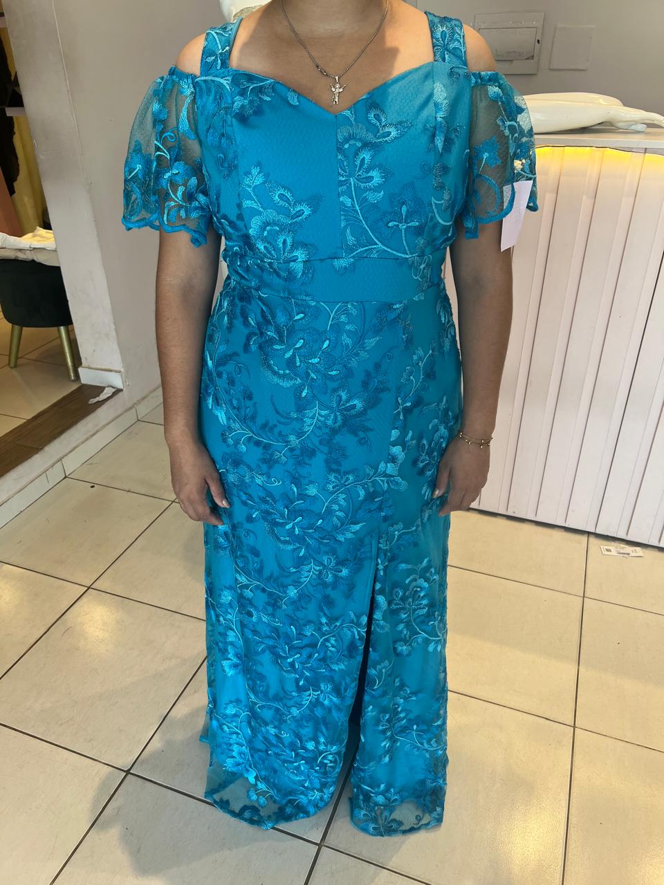 VESTIDO TURQUESA ENCAJE TALLE XG