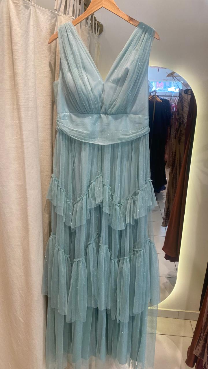 VESTIDO VERDE AGUA BRILLITOS CAPITAS TALLE G
