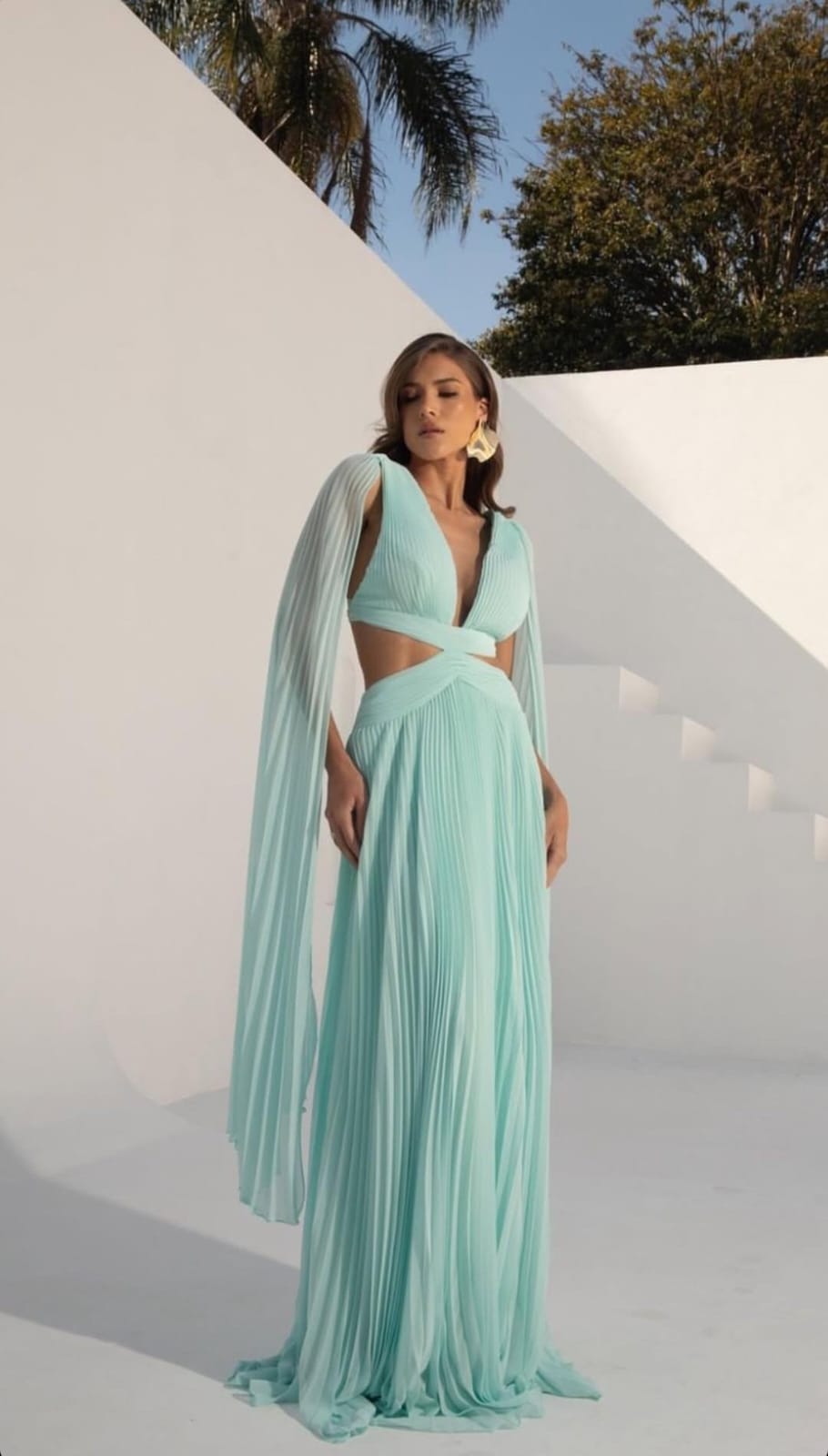 VESTIDO VERDE AGUA DOS PIEZAS TALLE P