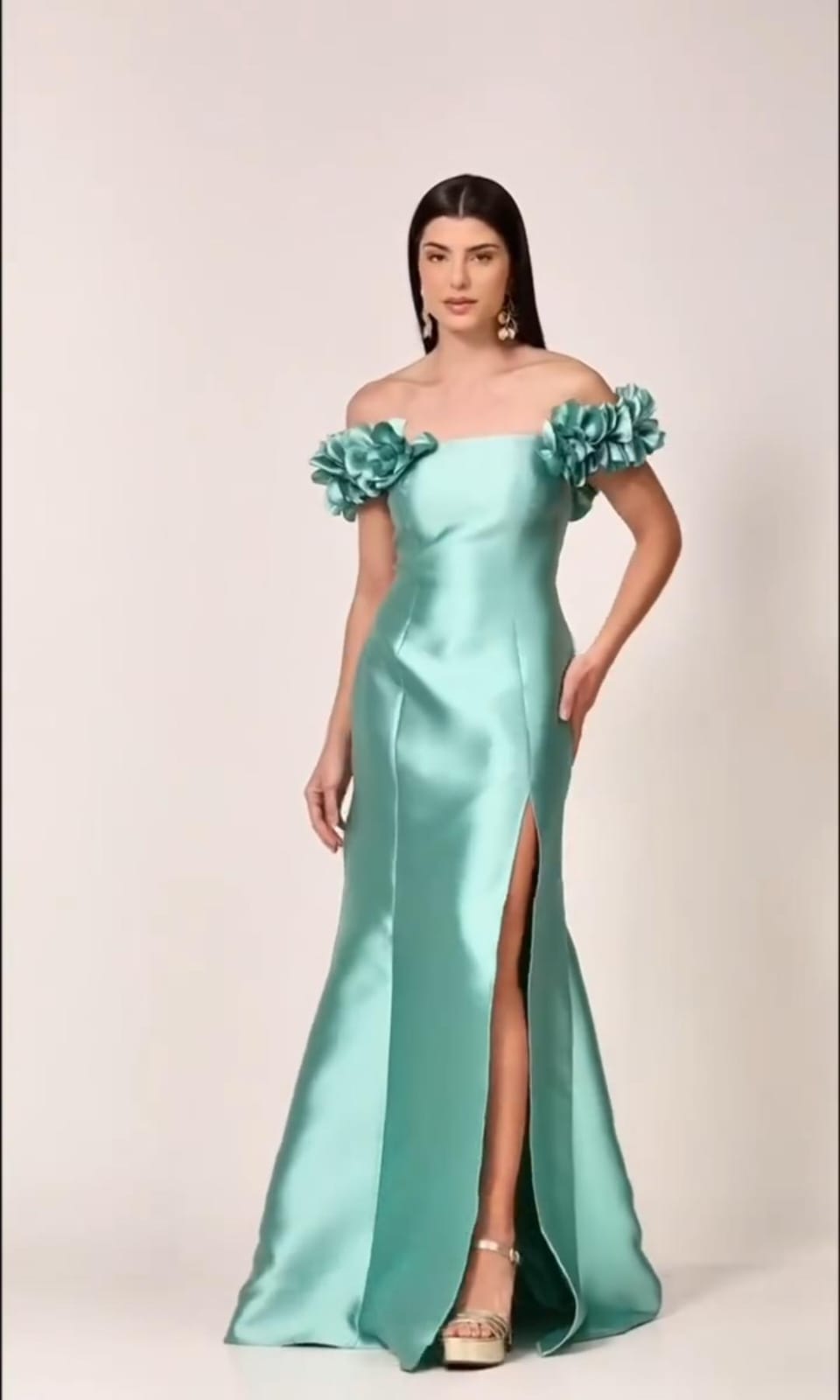 VESTIDO VERDE AGUA FLORES EN HOMBRO XG