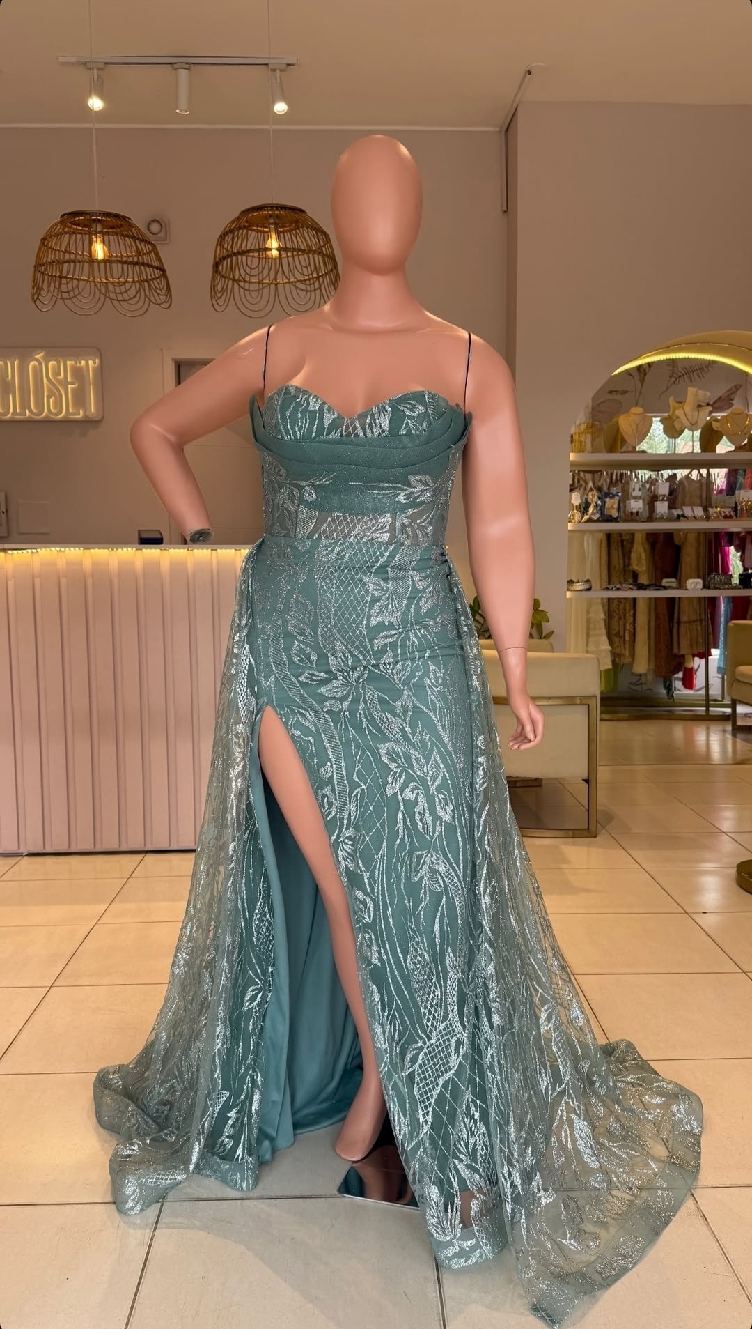 VESTIDO VERDE ESTRAPLES CAPAS ATRAS TALLE XG