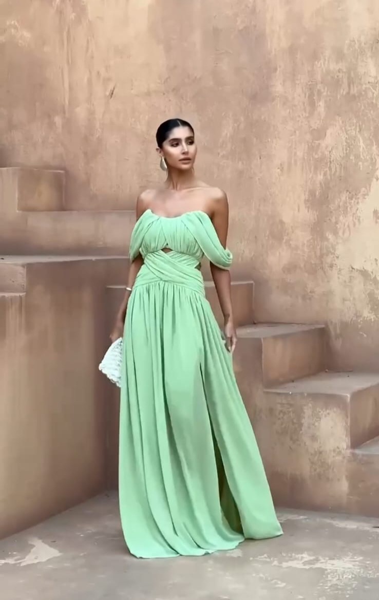 VESTIDO VERDE MANZANA CUELLO BOTE COSTADO ABIERTO TALLE M