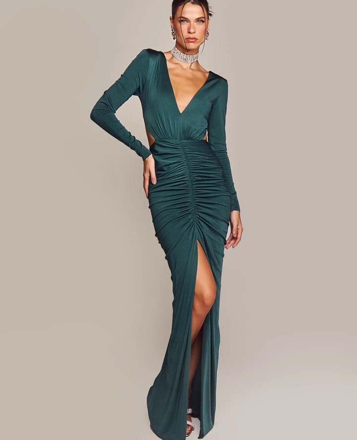 VESTIDO VERDE MUSGO DRAPEADO AL CUERPO LICRA TALLE P