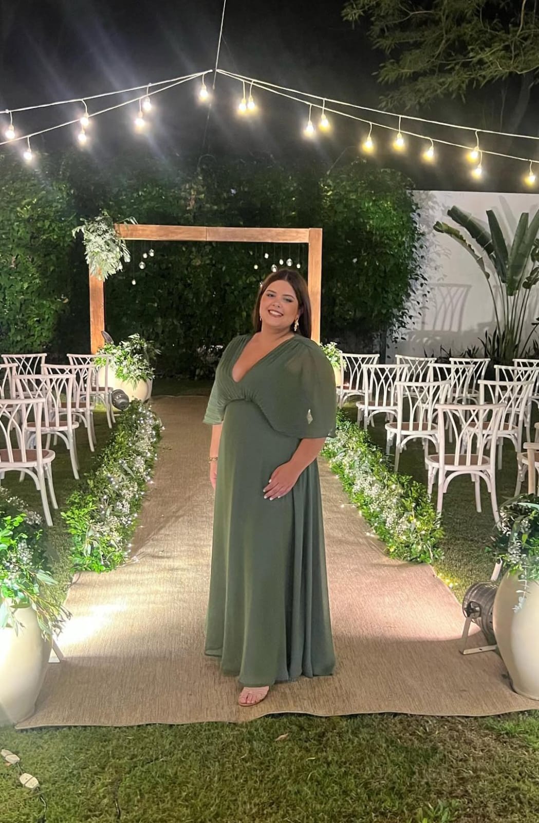 VESTIDO VERDE MUSGO MANGA PLIZADA TALLE G